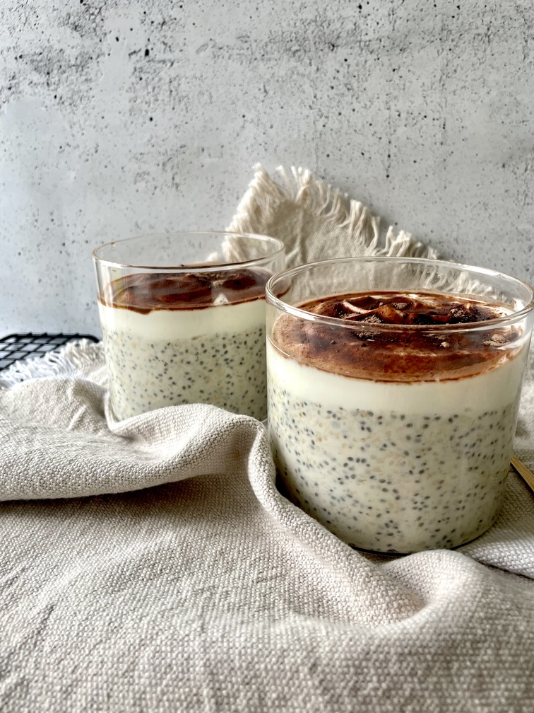 Tip: Wil je de tiramisu-ervaring nog completer maken? Voeg een scheutje koffie toe aan de onderste laag en leg zowel boven als onder de yoghurtlaag enkele lange vingers die je kort in de koffie hebt gedoopt 😋
